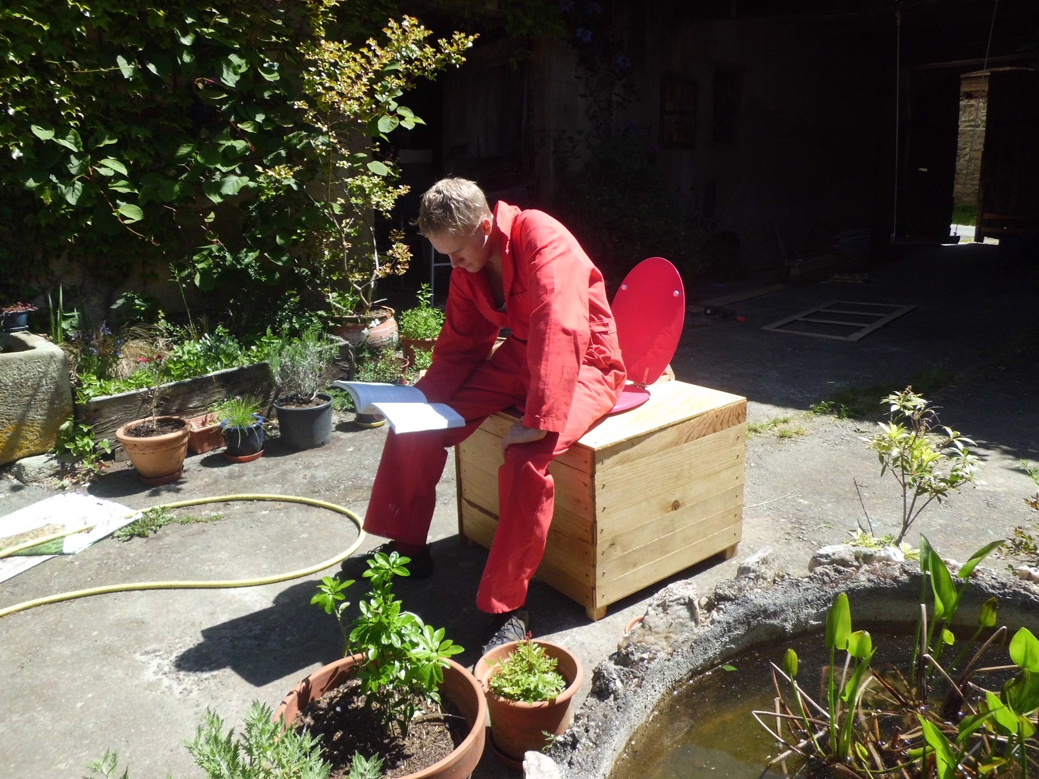 Liam on his compost toilet
